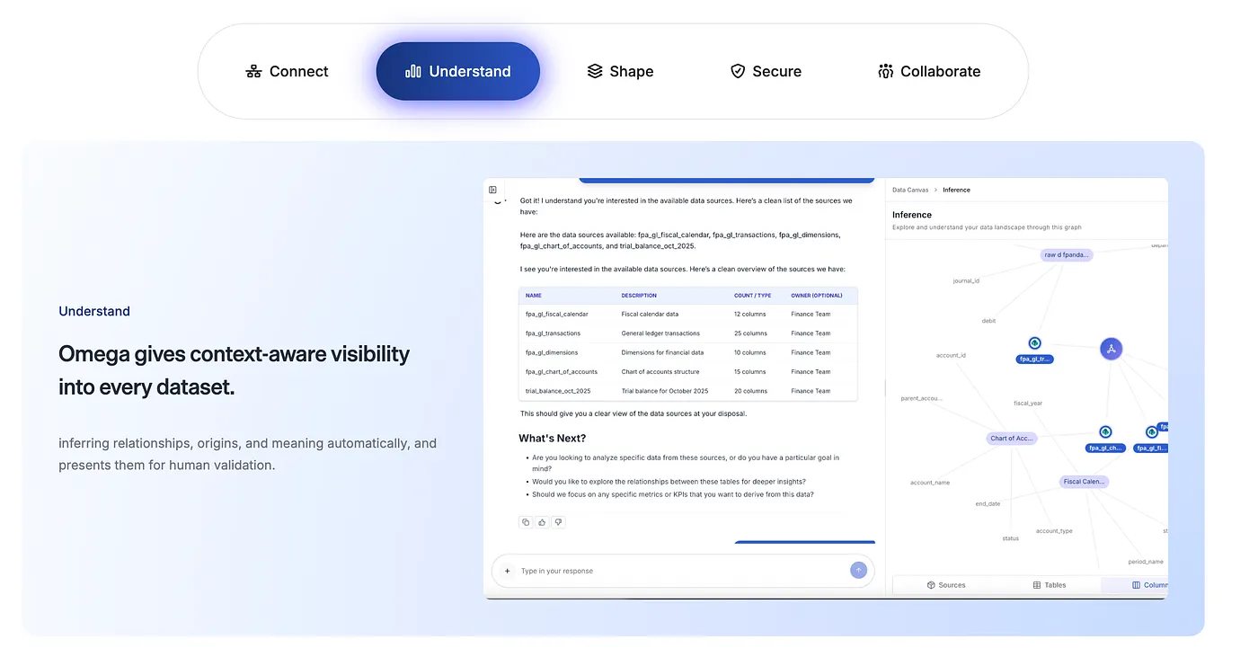 That’s why we built Omega, an AI Data Co-worker that handles the grunt work so you can focus on insights, not infrastructure. It cleans, connects, and transforms data automatically, turning months of effort into minutes of intelligence.